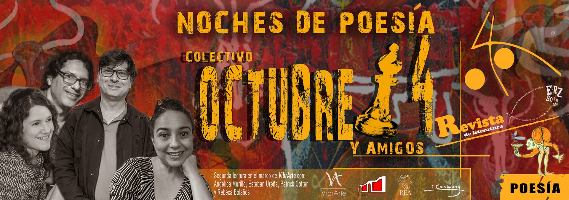 Noches de poesía es un micro espacio de lectura poética en el marco de VibrArte. Actividad que, durante cuatro semanas, estará hospedada en Casa Gaspar, Los Yoses. Un ciclo de arte, poesía y formación en homenaje a Isidro Con Wong, figura fundamental de las artes visuales en Costa Rica. Una invitación a volver a mirar la obra del Isidro Con Wong desde lo compartido, desde los trazos que dejó en su arte, y desde los vínculos que su sensibilidad sigue inspirando. La iniciativa nace de una alianza entre artistas, gestoras y espacios culturales, y se posiciona como un gesto de gratitud, de continuidad y de apuesta por el arte como experiencia comunitaria.